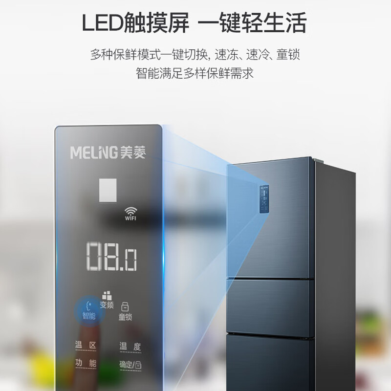 美菱(MELING) BCD-271WP3CX变频电冰箱271升三门一级能效变频家用无霜-32度速冻 中门宽幅变温