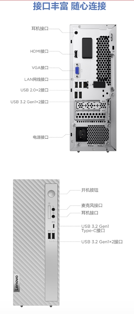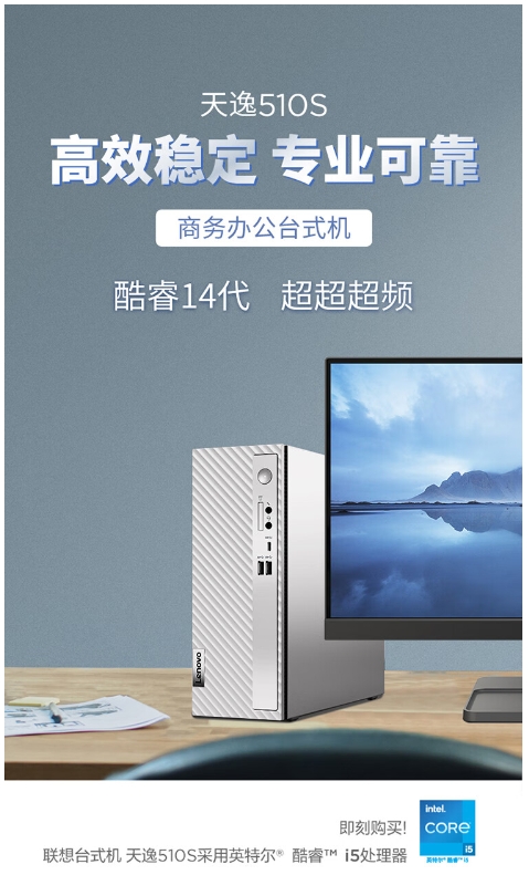 联想/LENOVO 天逸510S 台式计算机 (酷睿14代i5-14400 16G 512GB SSD Win11)23英寸显示器 自营