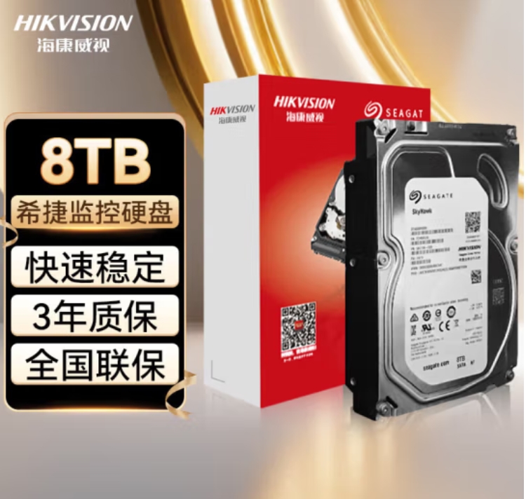 海康威视ST8000HKVS002希捷监控级专用硬盘 8T 自营