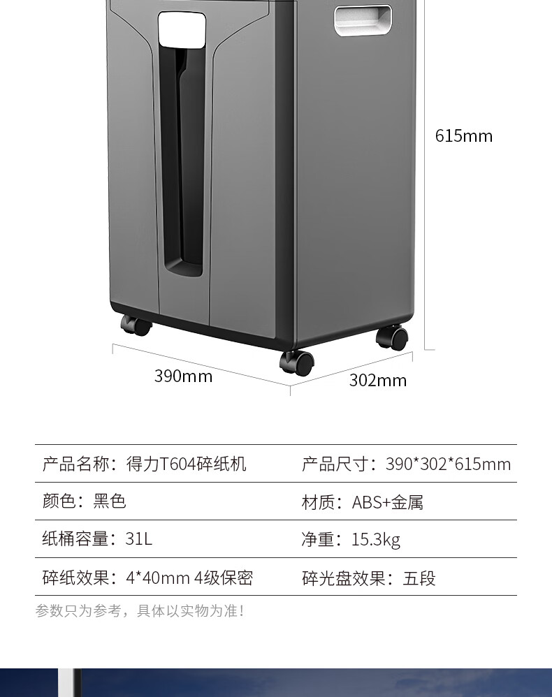 得力/deli T604 碎纸机 4级保密(单次16张 31L 持续30分钟 )