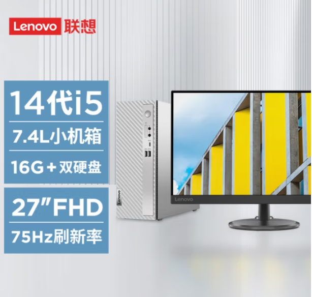 联想/LENOVO 天逸510S 台式计算机 (酷睿14代i5-14400 16G 512GB SSD Win11)23英寸显示器 自营