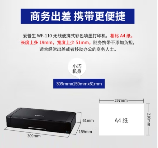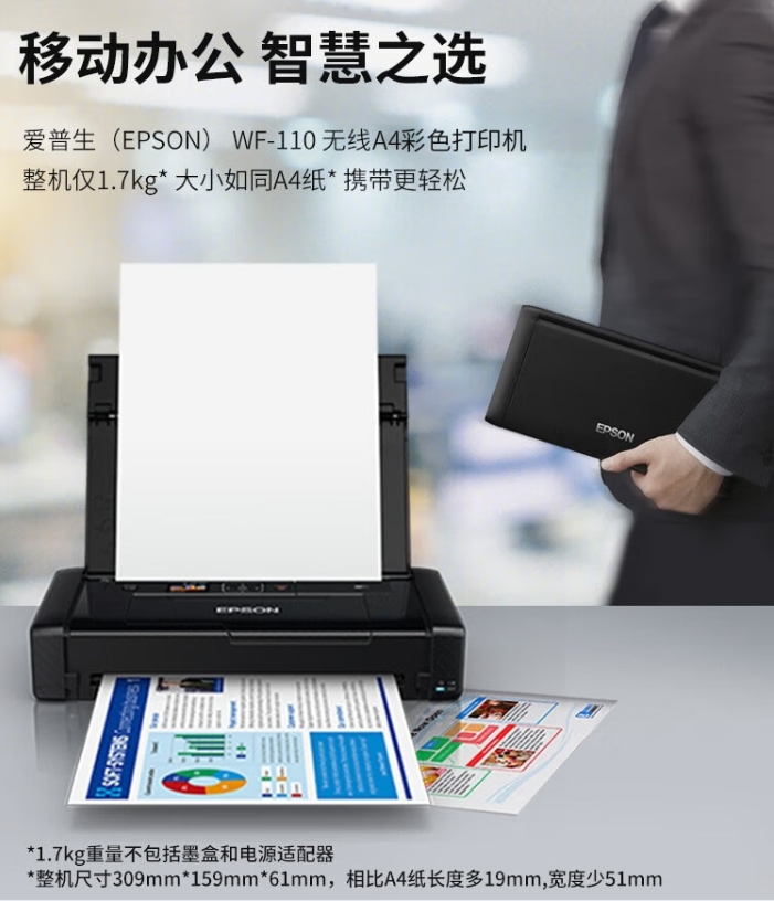 爱普生(EPSON)WF-110 打印机 A4彩色喷墨打印机 自营