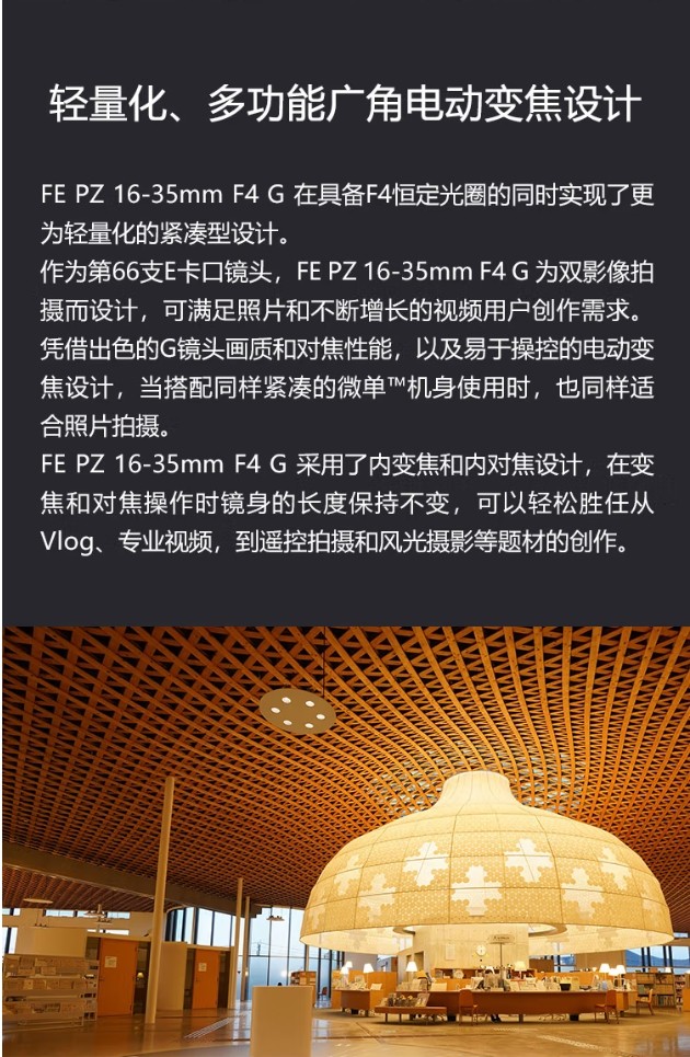 索尼(SONY)FE PZ 16-35mm F4 G 全画幅广角电动变焦F4恒定光圈G镜头 自营